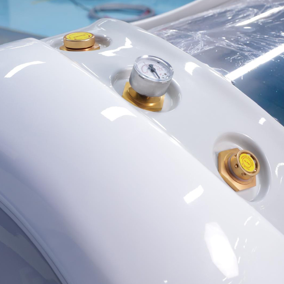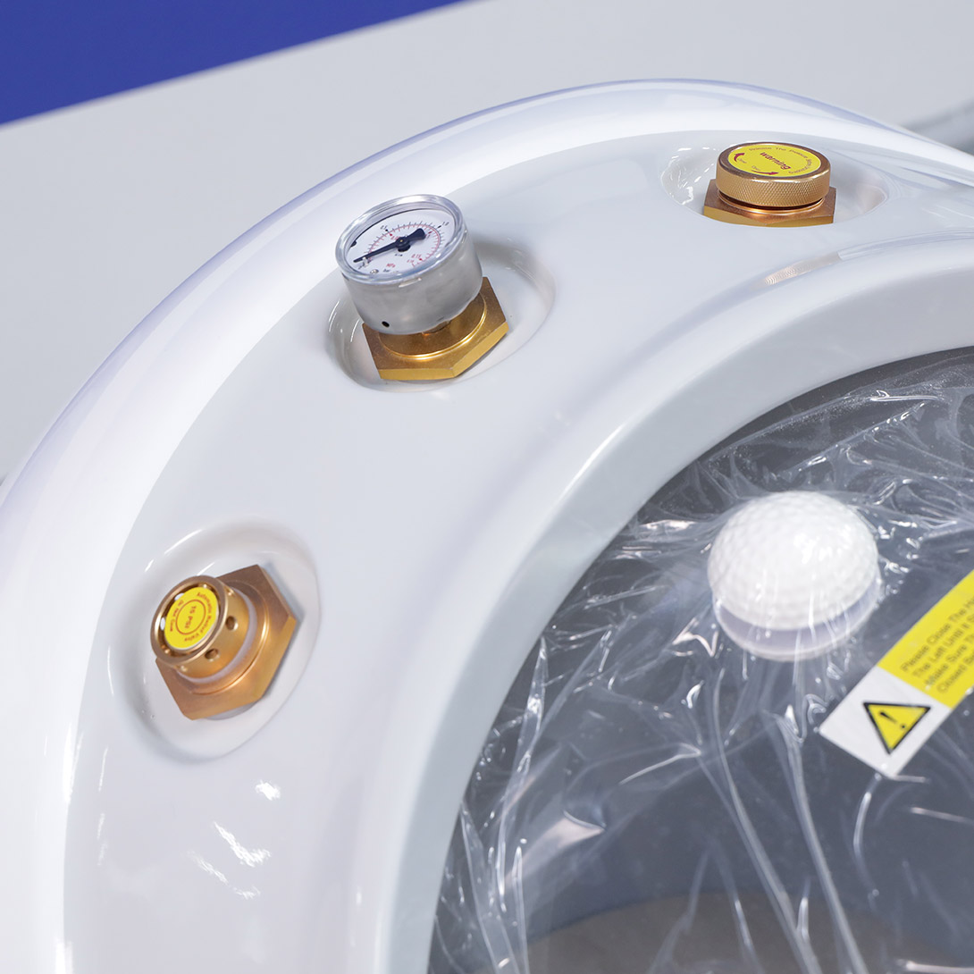 Inside, the chamber offers a relaxing and hygienic environment enhanced by UV disinfection and soft internal lighting. A touch screen control panel allows you to easily customise your therapy sessions, ensuring complete control over pressure, temperature, and session duration.