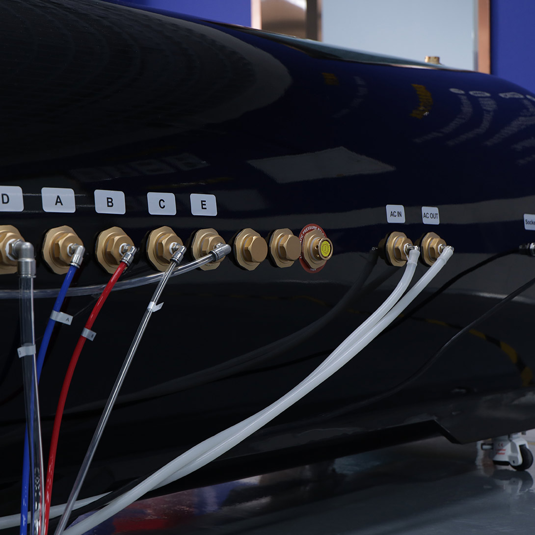 Operating between 1.3ATA (4.5psi) and 2.0ATA (14.5psi), the chamber provides optimal pressurisation to improve oxygen absorption, accelerate tissue repair, and enhance recovery. Dual intelligent touch screens — a 9-inch internal and a 13-inch external display — allow seamless operation, giving users full control inside and out.