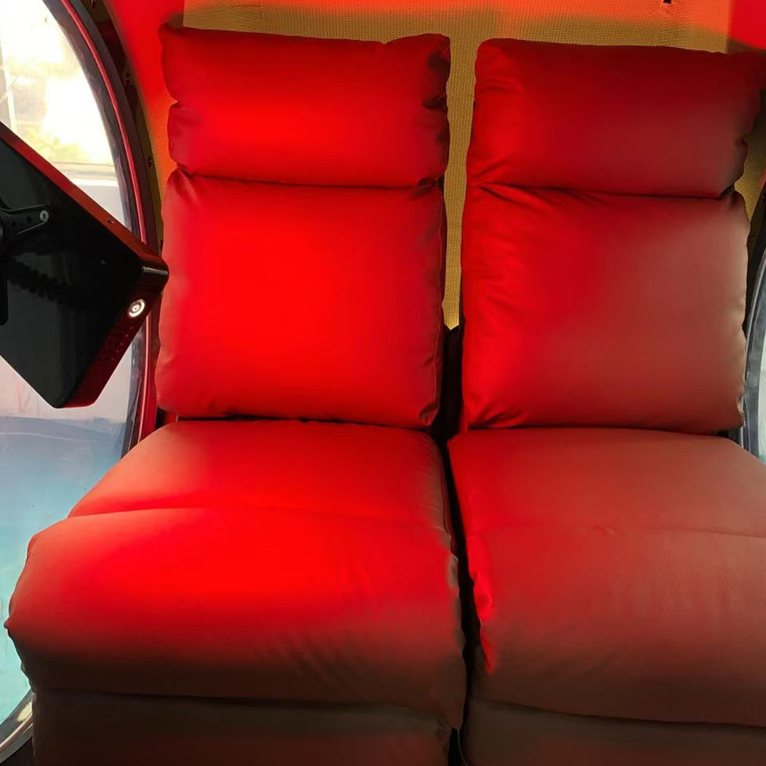 The open and spacious cabin features a clear front door and two large round windows, creating an inviting and light-filled atmosphere. Inside, two ergonomically designed reclining chairs allow both users to unwind and experience the therapeutic benefits of oxygen and red light therapy. Red light therapy complements the oxygen environment by supporting cellular regeneration, improving circulation, and reducing inflammation for enhanced wellbeing.