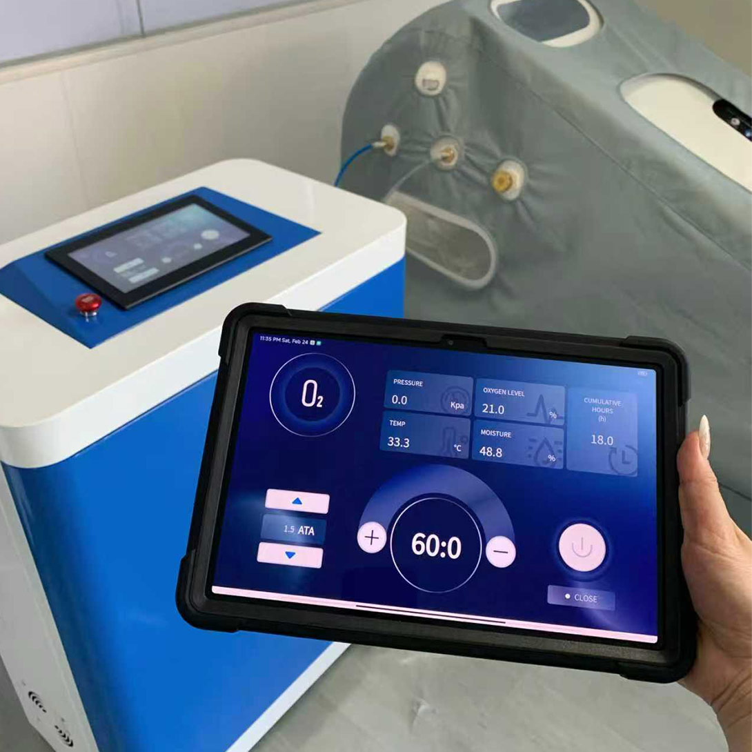 Featuring a fully automated control system, the chamber can be managed through an intuitive iPad interface, allowing precise adjustment of pressure, oxygen concentration and session duration. Traditional manual controls are also included for those who prefer hands-on operation. An integrated oxygen concentrator delivers 93–97% purity, ensuring optimal oxygen absorption and consistent therapeutic benefit.
